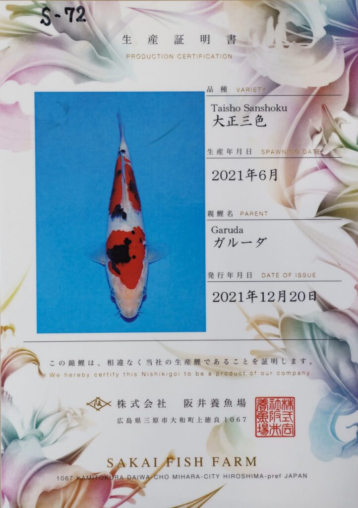 大正三色 63cm 2025 1/23 錦鯉 紅白 預り 2025年1月10日2025年1月23日 品種大正三色性別メスサイズ63cm生産者坂井養鯉場雌親ガルーダ生産年2021年12月 ¥300,000(税込) ご購入・見学希望の方はメール又はお電話でお気軽にお問合せください。 お問合せ 生産証明書 受賞歴 錦鯉に関する相談お問合せ TEL:090-3081-1081 メールによるお問合せ 錦鯉 紅白 預り メス 受賞鯉 大日養鯉場 紅白 よかったらシェアしてね! URLをコピーしました! URLをコピーしました! 紅白 75cm 昭和 72cm この記事を書いた人 koyanocf 関連記事 丹頂昭和 62cm 2025年2月11日 昭和三色 58cm 2025年1月16日 昭和 42cm 2025年1月16日 昭和三色 41cm 2025年1月16日 紅白 75cm 2025年1月16日 高野三色 54cm 2025年1月16日 丹頂 58cm 2025年1月16日 緋写り 60cm 2025年1月11日 コメント コメントする コメントをキャンセルコメント ※ 名前 ※ メール ※ サイト 次回のコメントで使用するためブラウザーに自分の名前、メールアドレス、サイトを保存する。