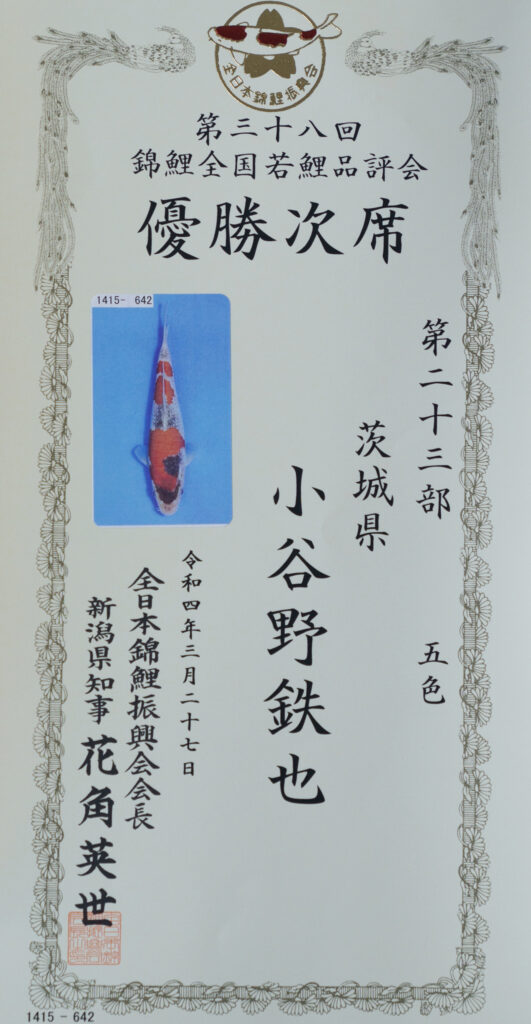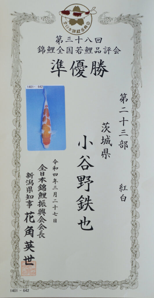 第38回錦鯉全国若鯉品評会第23部準優勝