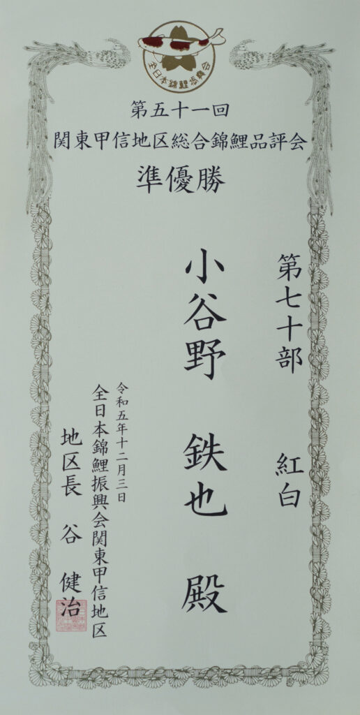 第51回関東甲信地区総合錦鯉品評会第70部準優勝