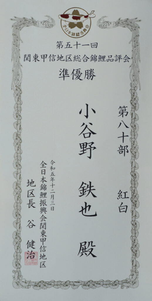 第51回関東甲信地区総合錦鯉品評会第80部準優勝